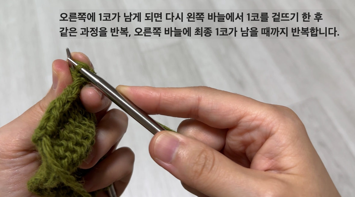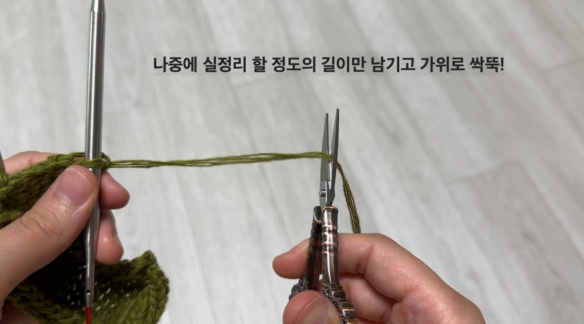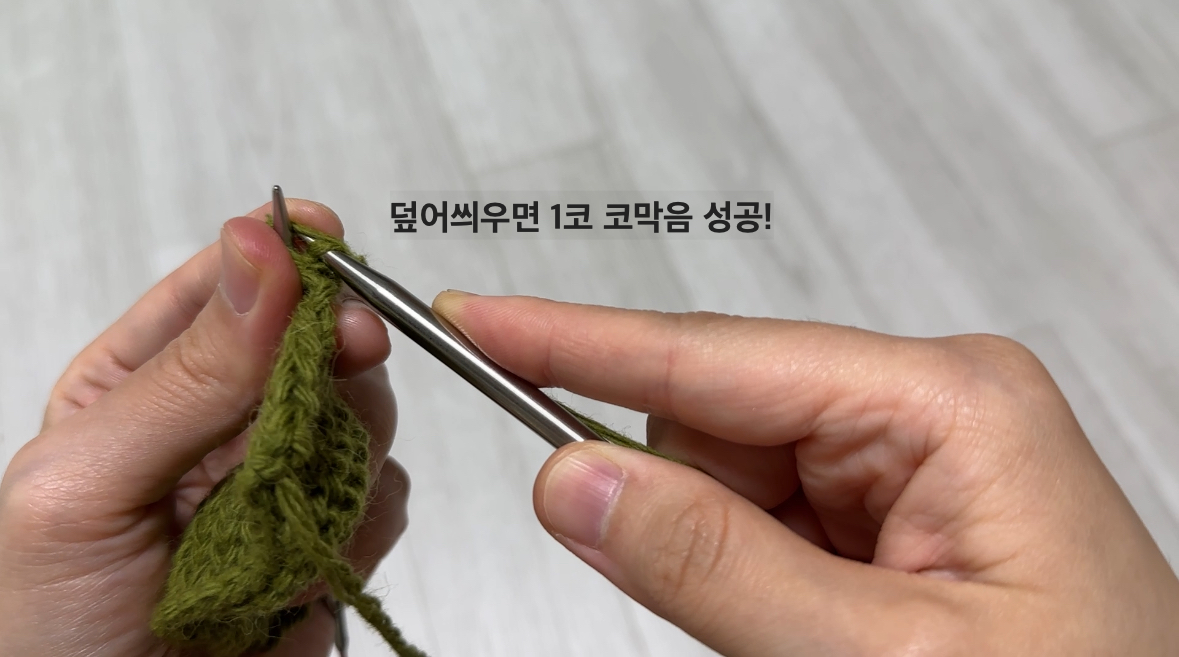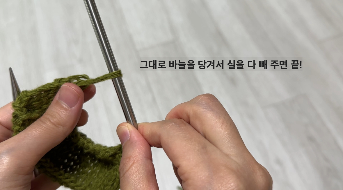 저는 편의상 겉뜨기로 마무리했는데 뜨개물의 진행에 따라 안뜨기로도 덮어씌워 코막음을 하기도 합니다.