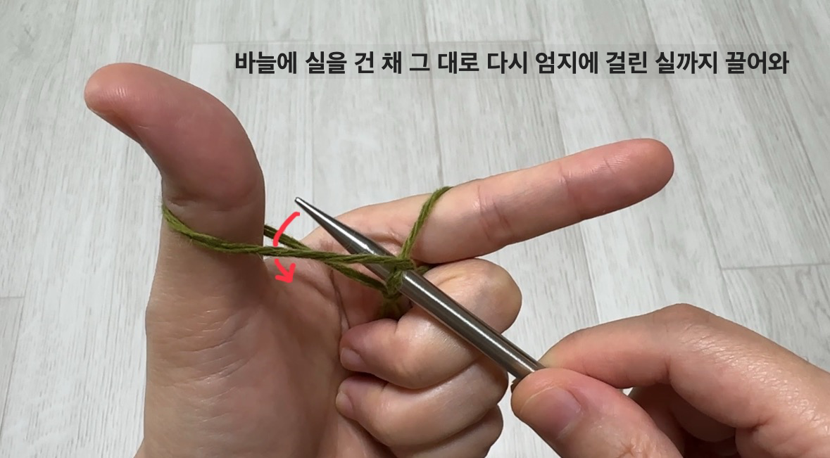 뜨개질을 시작하기 위해 바늘에 코를 만드는 과정이예요. 뜨고자 하는 뜨개물의 특성에 따라 시작코의 방법이 다양해요. 각각의 방법은 앞으로 차차 알아보도록 하겠습니다.