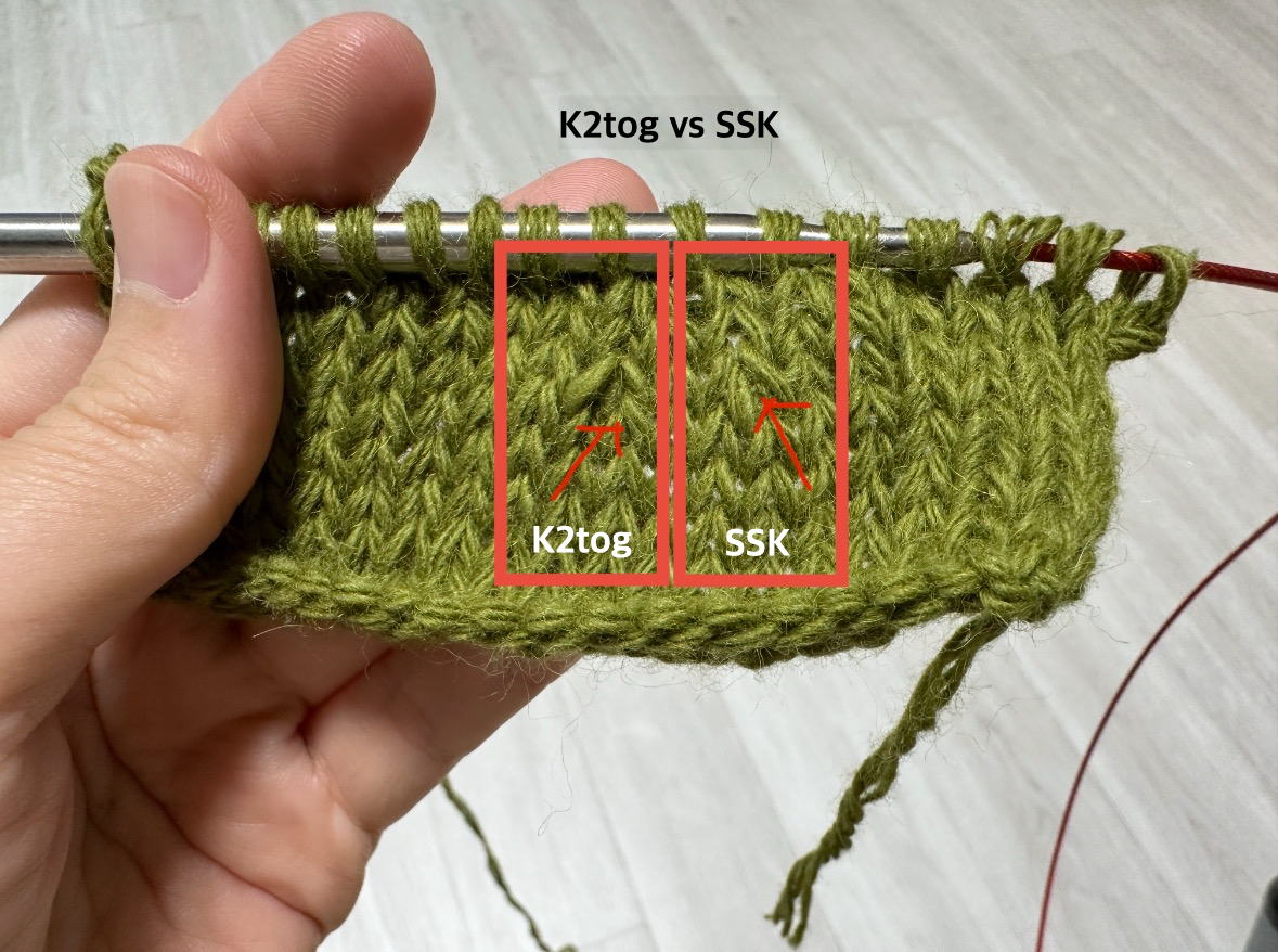 - SSK = Slip, Slip, Knit / 2코 슬립 후 겉뜨기 (1코 감소)