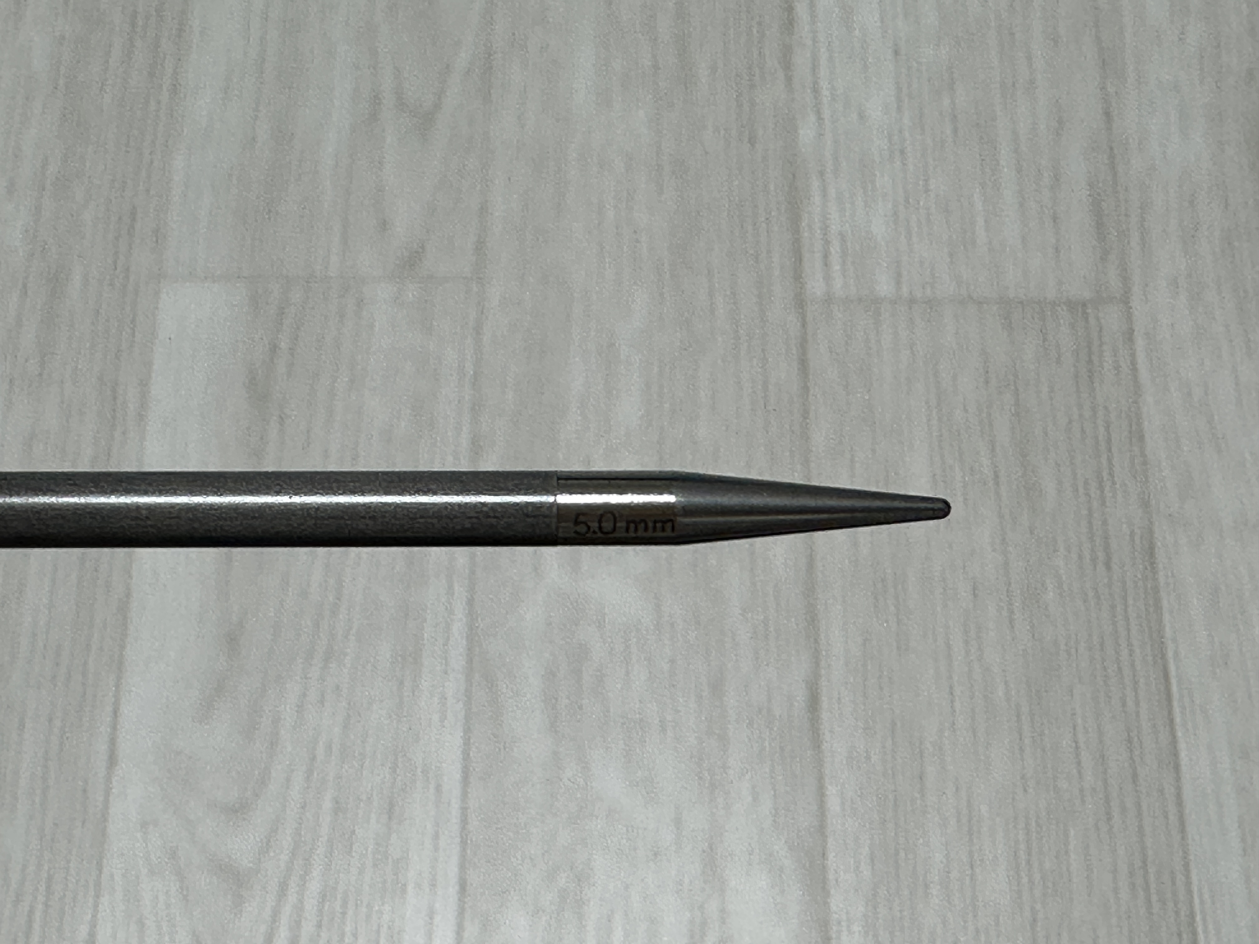 안정적이고 견고한 느낌. 뾰족함은 유지되어 니팅, 레이스, 꼬치코 줄임 등 섬세한 동작도 잘 잡아줘요.