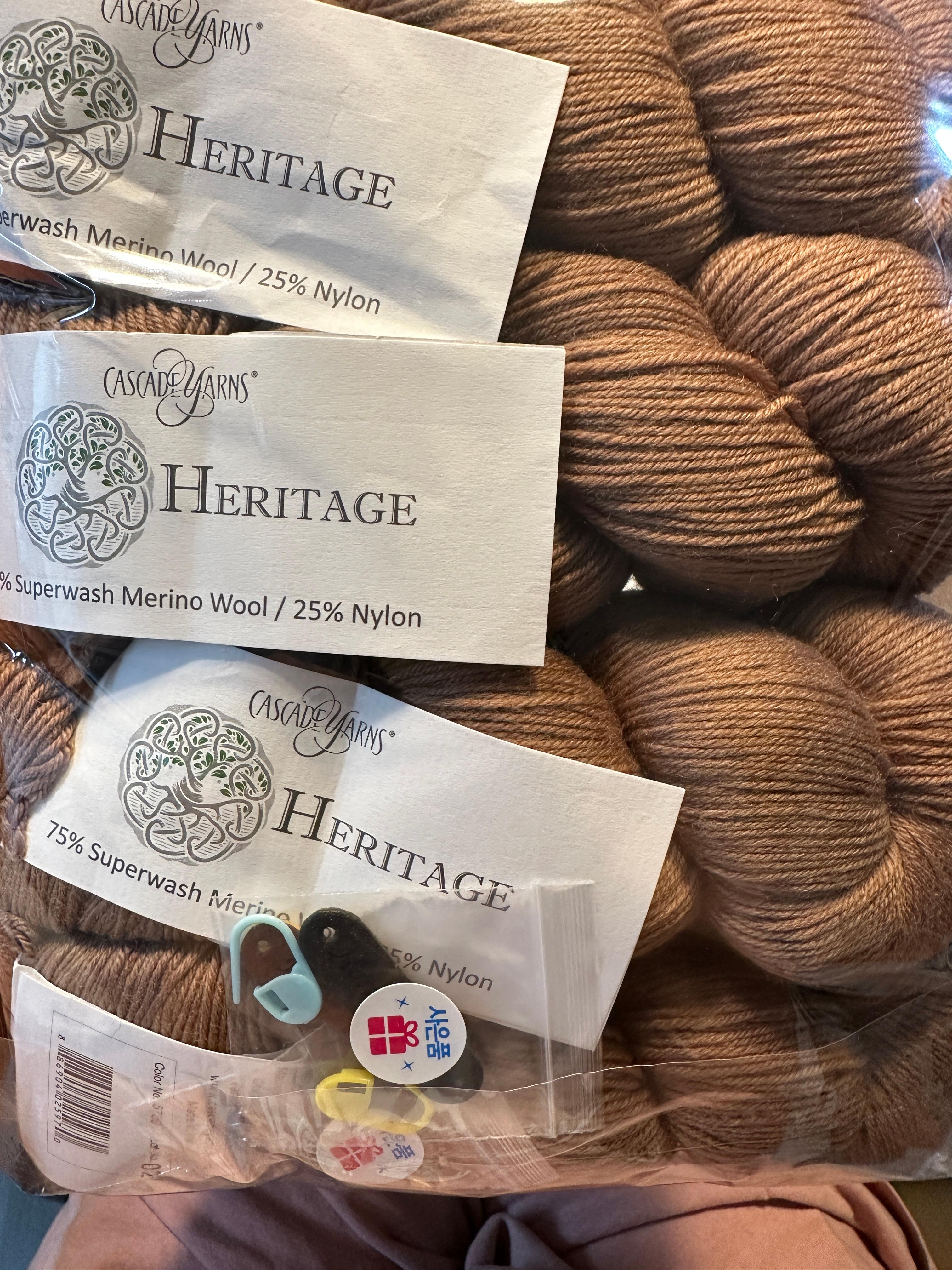 - 실 : 캐스케이드 헤리티지(100g/400m) 5759 색상 4타래(+⍺), 메리브러쉬 울 모헤어 콘사 탄 색상 1개