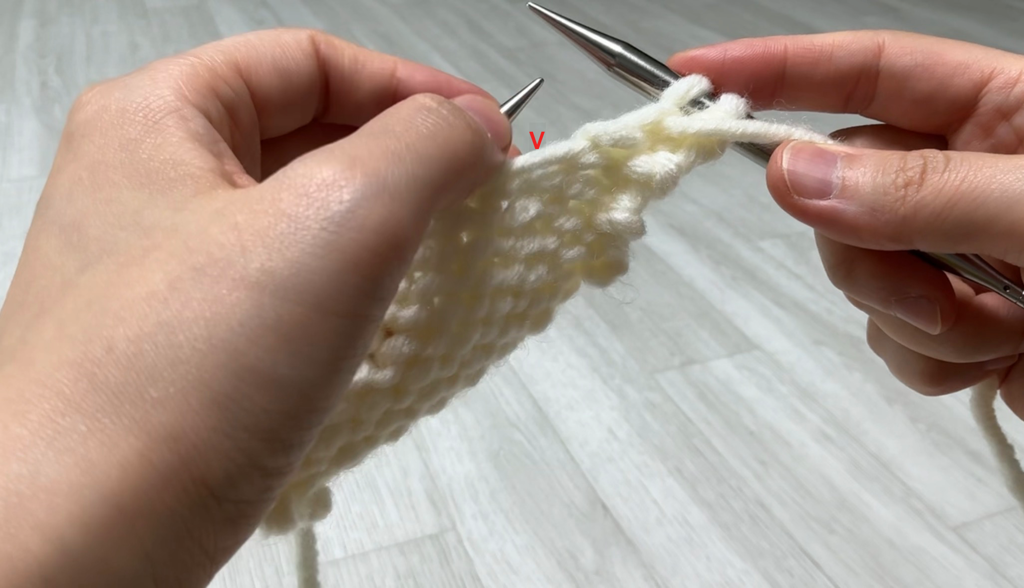 사진 속에서 V자로 표시된 부분이 바늘과 바늘 사이의 가로실입니다.